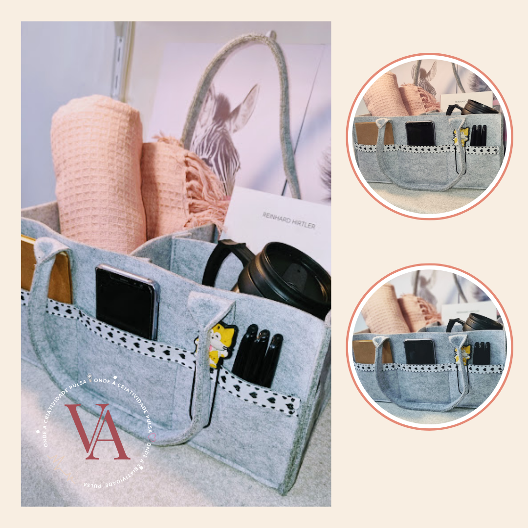 1 Organizador Decorativo Material: Feltro Cor: Cinza Tamanho: 19x22x38 - 2 partições